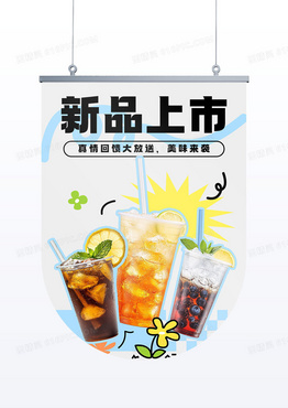 原创简约奶茶店新品上市促销吊旗道旗设计宣传
