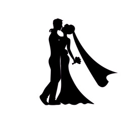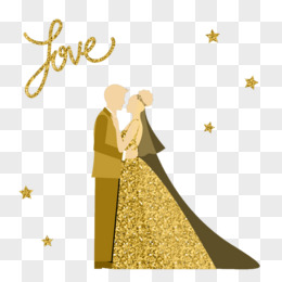 手绘插画风新郎新娘拍婚纱照免抠元素