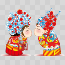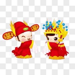 卡通Q版穿中式服装的新郎新娘免抠元素