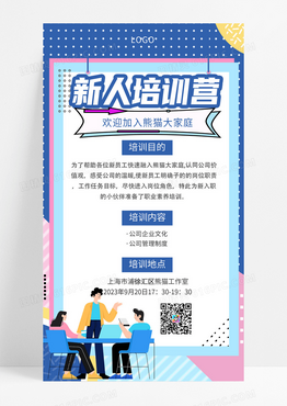 教育培训紫色扁平插画背景新人入职培训营手机宣传海报