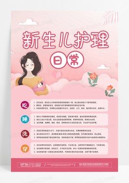 粉色手绘温馨母婴日常新生儿护理宣传海报