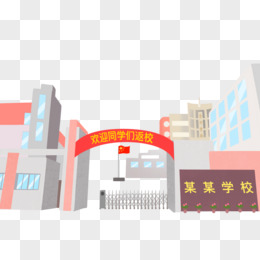 卡通校门口拉横幅欢迎新生场景免抠素材