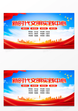 蓝色简约新时代文明实践中心六传六习党建展板背景新时代文明实践所展板