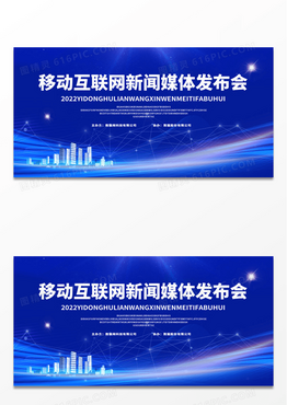 大气蓝色科技风移动互联网新闻媒体发布会行业模板展板