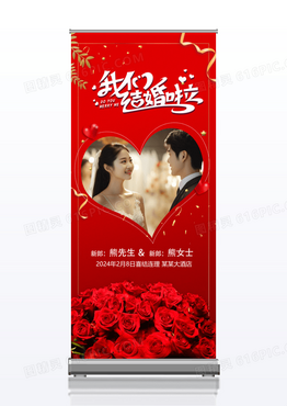 爱心玫瑰我们结婚啦婚礼婚庆水牌易拉宝x展架
