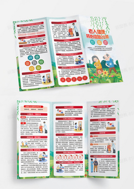绿色卡通老人健康核心信息20条老年人健康三折页