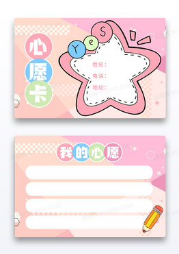 粉色可爱卡通心愿卡儿童卡片心愿卡