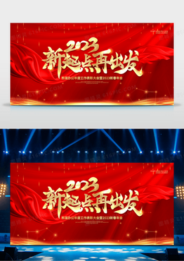 2023新起点新征程红色大气企业年会舞台背景展板