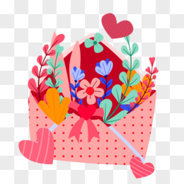 手绘卡通粉色花卉信封免抠素材