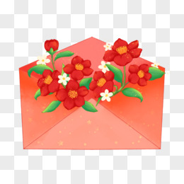 矢量红色花卉信封素材