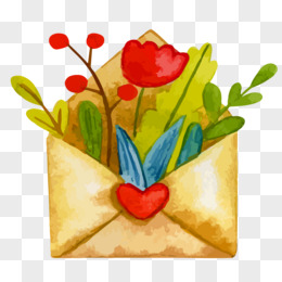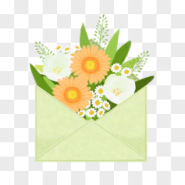 手绘信封鲜花免抠元素