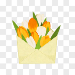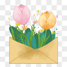 手绘郁金香花卉信封元素