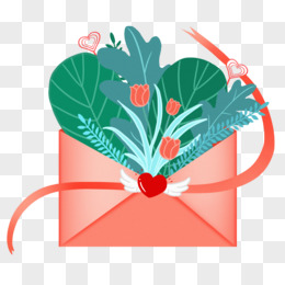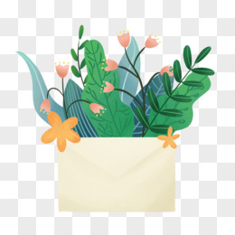 卡通手绘植物信封免抠素材