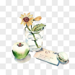 苹果和玻璃杯手绘画素材图片