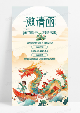 新中式端午节粽子邀请函划龙舟亲子活动宣传海报