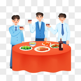 手绘卡通公司团建饭局聚餐吃饭免抠素材