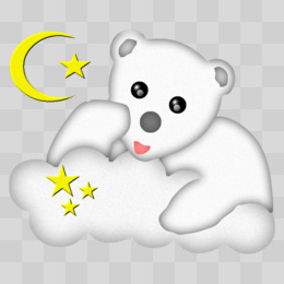 白色卡通可爱小熊设计月亮星星