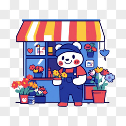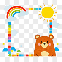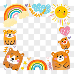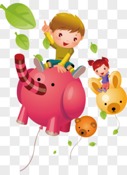 卡通小男孩与小熊坐热气球高空观光免抠素材