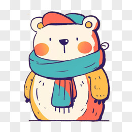 卡通手绘免抠熊和企鹅冰钓场景元素