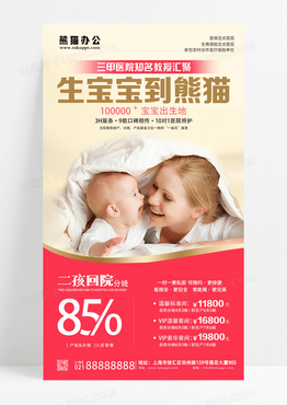 简约渐变色妇幼妇产医院活动促销手机手机文案海报设计