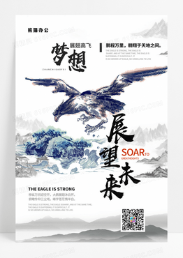简约风展望未来雄鹰翱翔企业文化创意海报