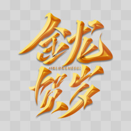 大气毛笔风龙腾虎跃艺术字设计金色立体设计