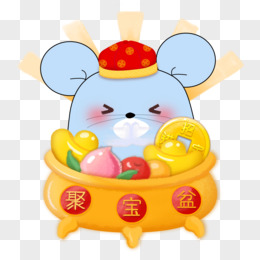 创意卡通蓝色喜庆鼠年聚宝盆元素