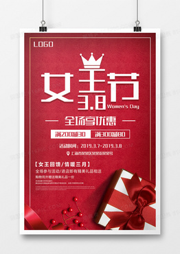 2019年三八女王节红色喜庆大气风格宣传海报设计