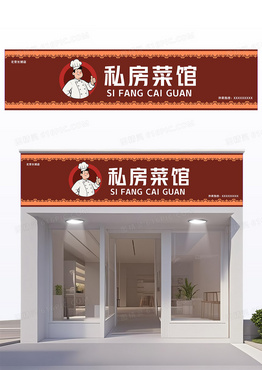 红色传统风喜庆简约复古风饭店门头餐饮门头私房菜馆门头