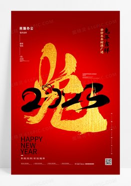 一组手绘插画风喜庆2023兔年兔子形象集合素材