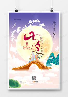 手绘新中式国潮牛郎织女鹊桥相会元素