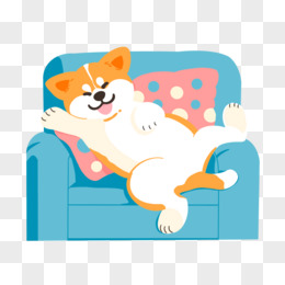 小柴犬瘫倒在沙发上卡通表情包免抠元素