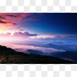 蓝色天空夕阳山峰