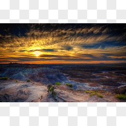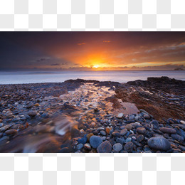 夕阳云彩河流石头