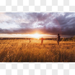 夕阳草地蓝天白云