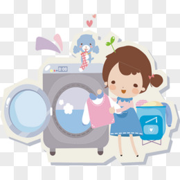 手绘插画妈妈用洗衣机洗衣服免抠素材