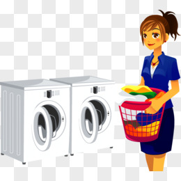 卡通手绘妈妈从洗衣机拿出衣服免抠元素