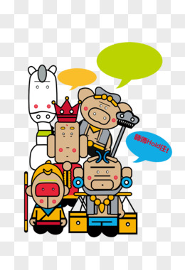 手绘卡通唐僧西天取经师徒四人免抠元素