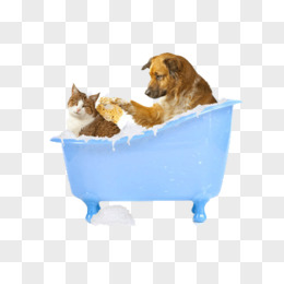 手绘卡通铲屎官给宠物猫洗澡免抠元素