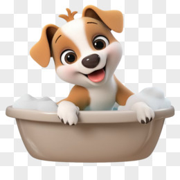 3D可爱小狗狗在浴盆洗澡免抠元素
