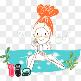 卡通手绘女孩开心泡温泉免抠元素