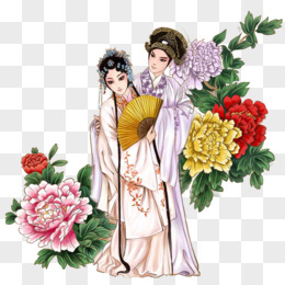 头戴蓝色蝴蝶结戏子装扮女性人物