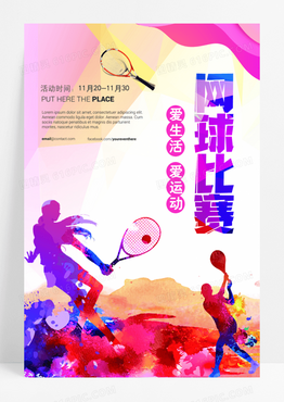 炫彩水墨风格网球比赛海报
