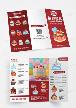 红色简约几何创意甜蜜蛋糕店宣传折页蛋糕三折页