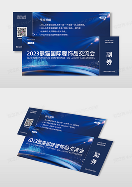 蓝色炫光奢饰品线条元素企业活动展会门票入场券