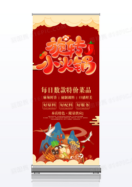 红色国潮风美味火锅冬季美食宣传x展架易拉宝