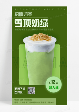 餐饮美食绿色清新招牌雪顶奶绿手机宣传海报