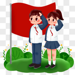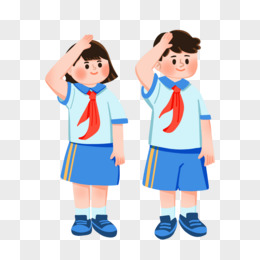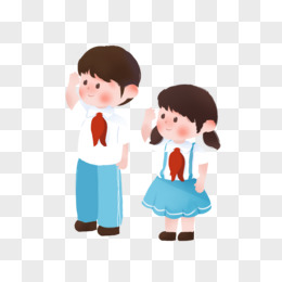 手绘卡通学生系红领巾敬礼场景插画免抠元素