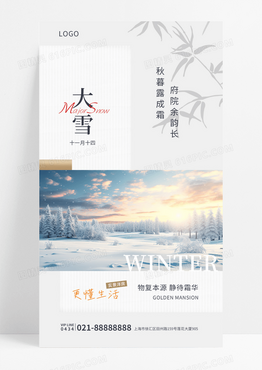 大雪地产节气24节气手机宣传海报雪地手绘插画