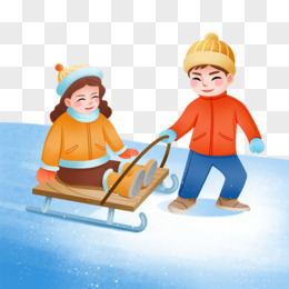 手绘卡通冬天亲子扫雪场景插画免抠元素